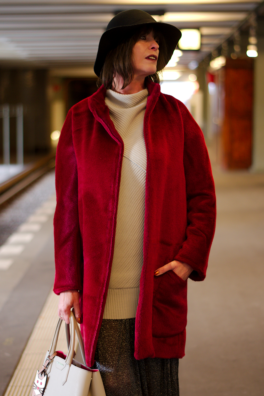 Übrigens ist der Mantel ein echter Berliner! Die Designerin Martina Rau hat ihn für ihr Label RAU Berlin* hier in Berlin entworfen und produziert und besonders gut gefällt mir an diesem edlen Teilchen, dass er seine Farbe – je nach Lichteinfall verändert.
