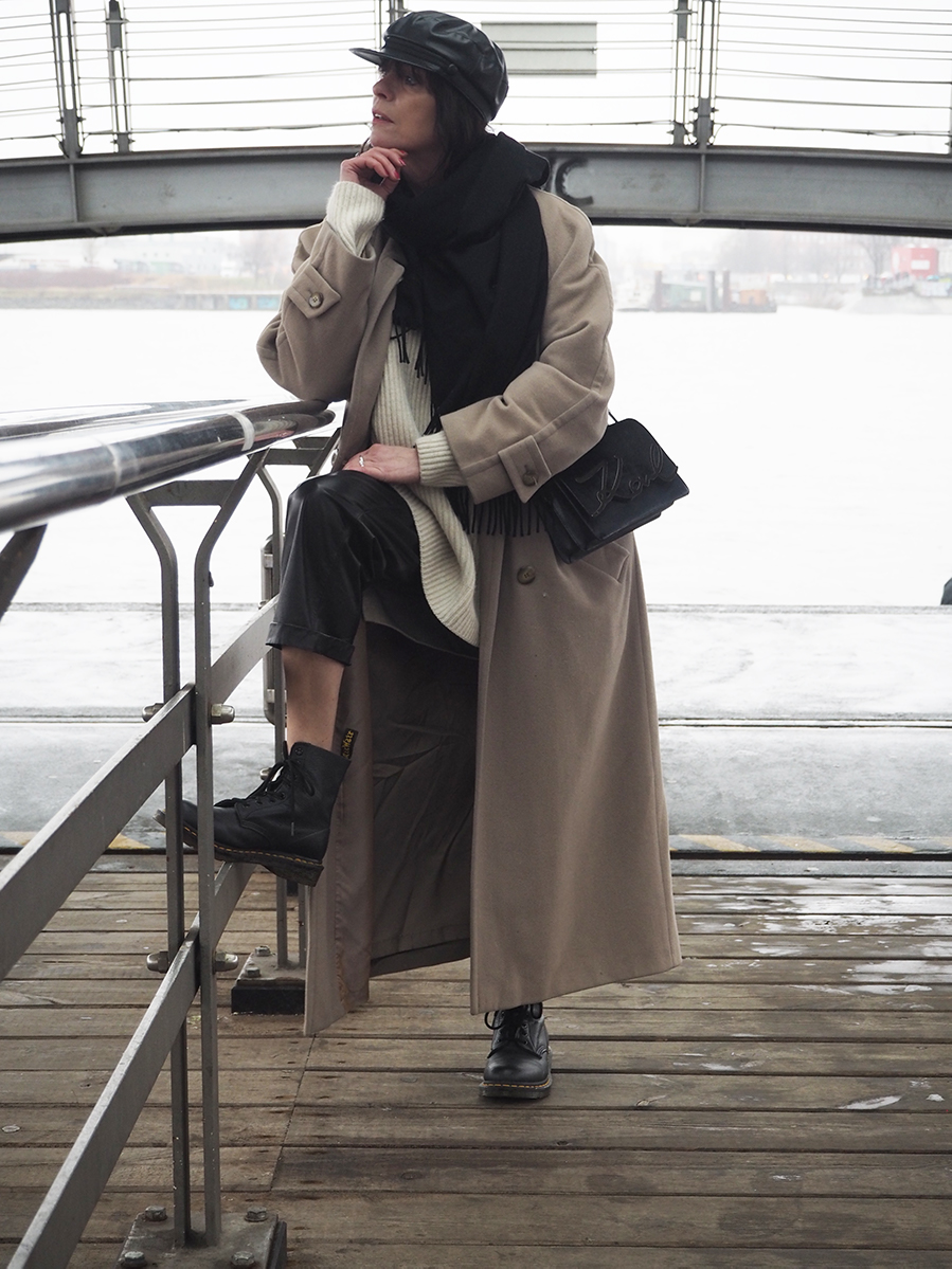 Photos by Bernd Oelmann Outfit: Sweater: H&M, Pants: Vektor, Scarf: Chanel, Bag: Karl Lagerfeld, Boots: Dr.Martens, Coat: Mauro, Cap: Zara