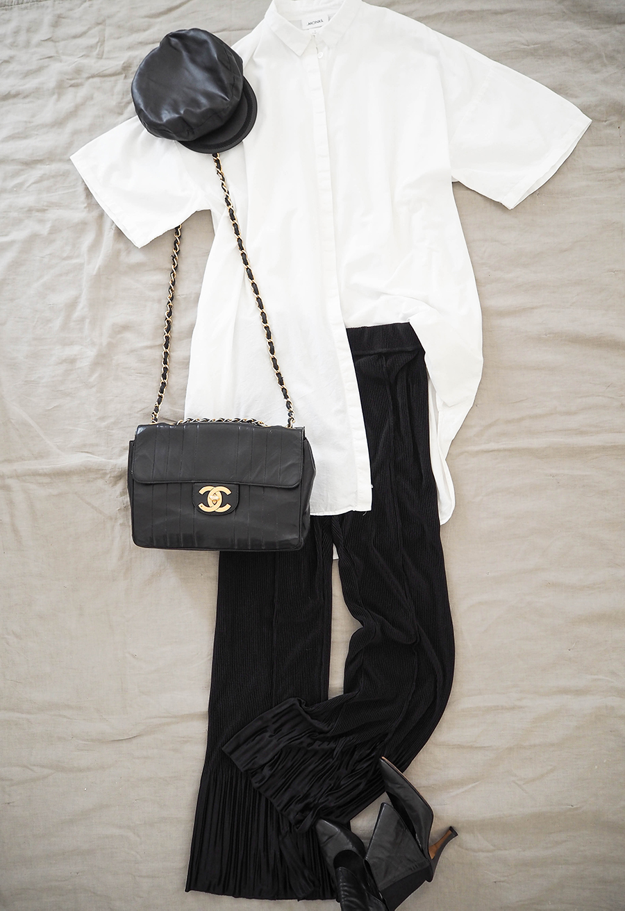 Shirt: Celine, Anzug: Zara, Tasche: Chanel, Schuhe: UN United Nude und Fashioncat: Coco
