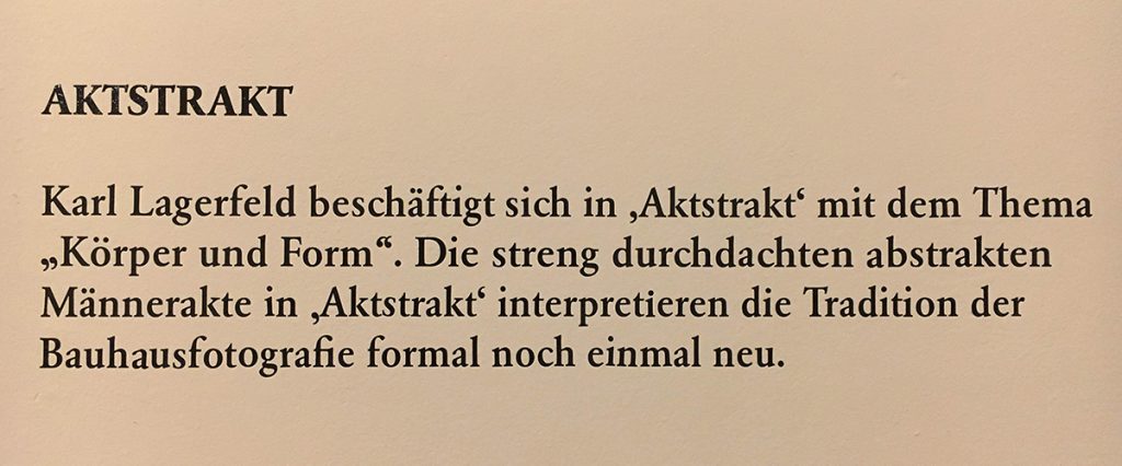 Insgesamt waren in „Visions“ über 150 Fotografien von Karl Lagerfeld zu sehen, denn er konnte eben nicht nur Mode zeichnen und entwerfen. Dabei waren auch Editoral Shootings und Fotostrecken, die er für Magazine wie „Vogue“, „Harper’s Bazaar“ oder auch „Numéro“ gemacht hatte. Außerdem gab es auch Dokumentationen, Filme und Videos über und von Lagerfeld zu sehen.